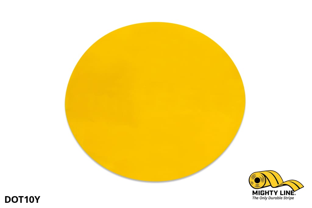 Patented Mighty Line Floor Marking Red Floor Tape JUMBO DOT Shapes for social distancing and other safety areas. Our new 5s Jumbo Dots Stop Signs are 9.5 inches wide. Mighty Line Jumbo Dot shapes are a great social distancing and 5s marking tool. Mighty Line 5s floor marking Dots point pedestrians where to stand or other safety areas. Part Number: DOT10Y UPC Number: